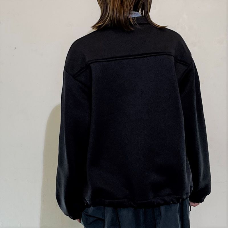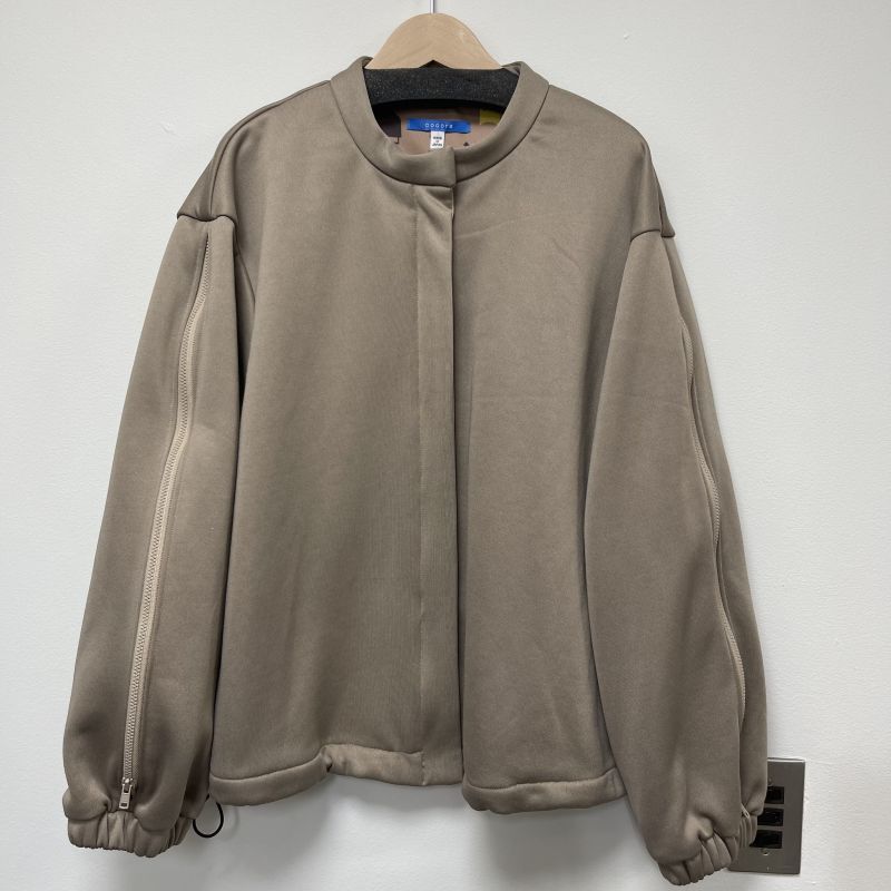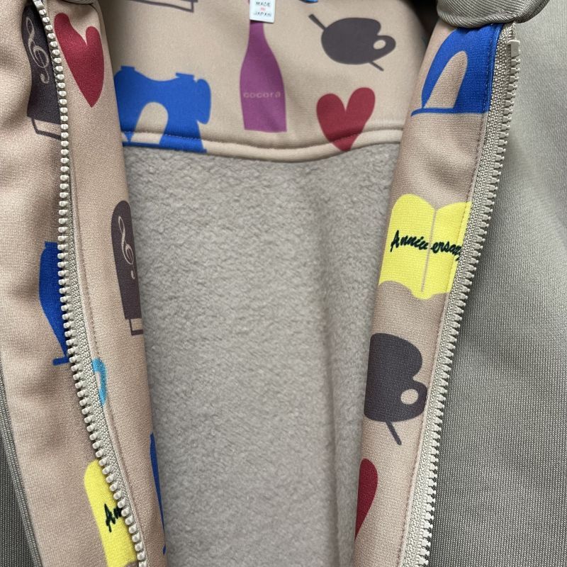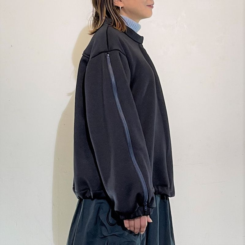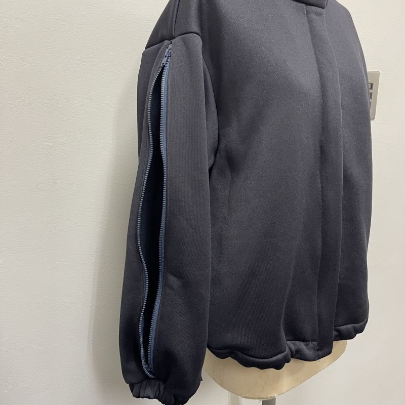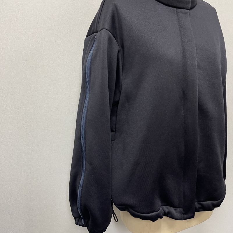 裏が薄いボアになった生地のブルゾンです。袖に着いたファスナーで温度調節できます。