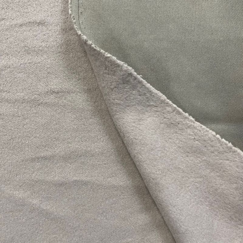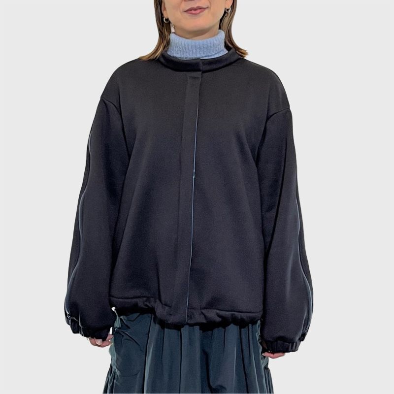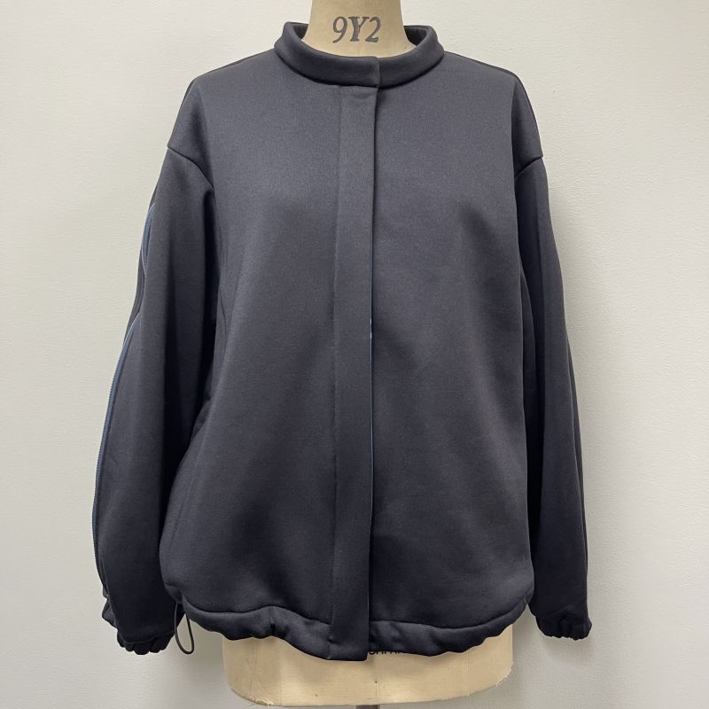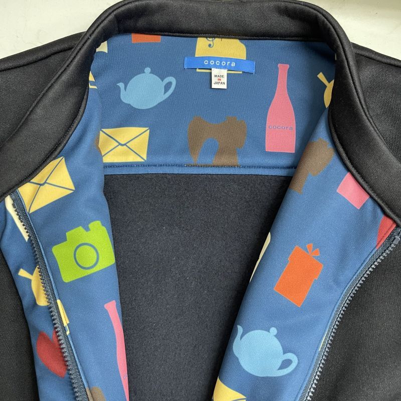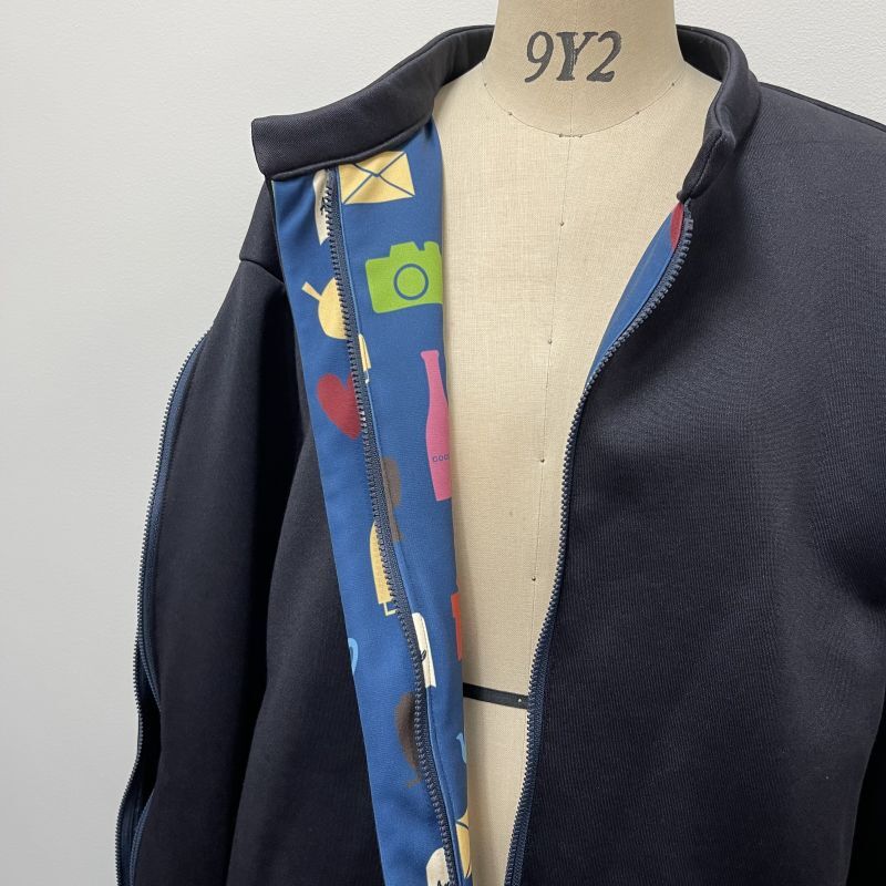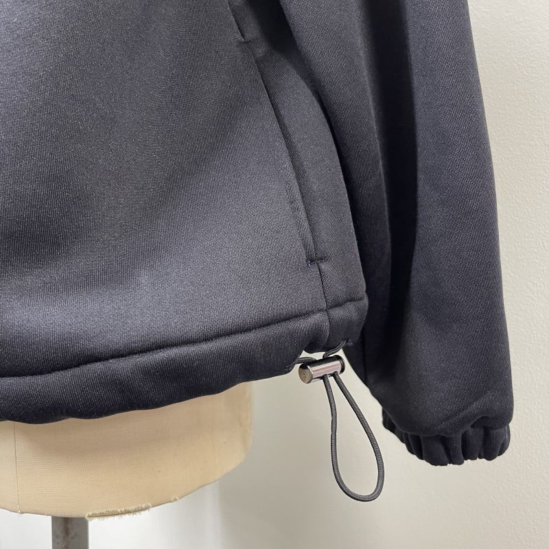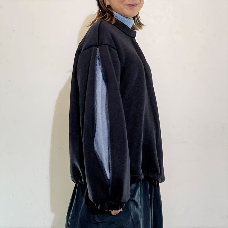 裏が薄いボアになった生地のブルゾンです。袖に着いたファスナーで温度調節できます。