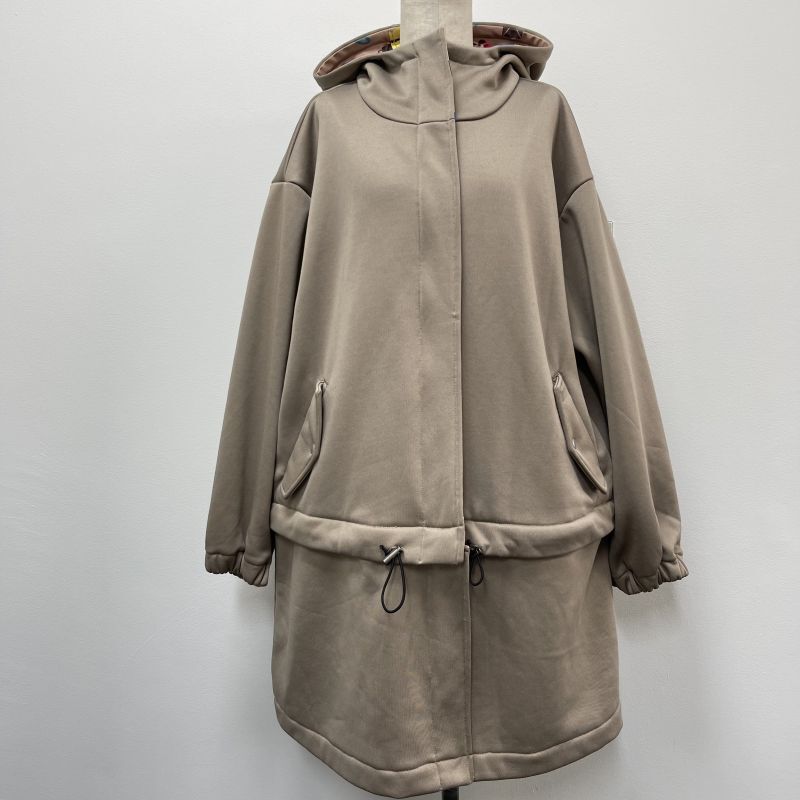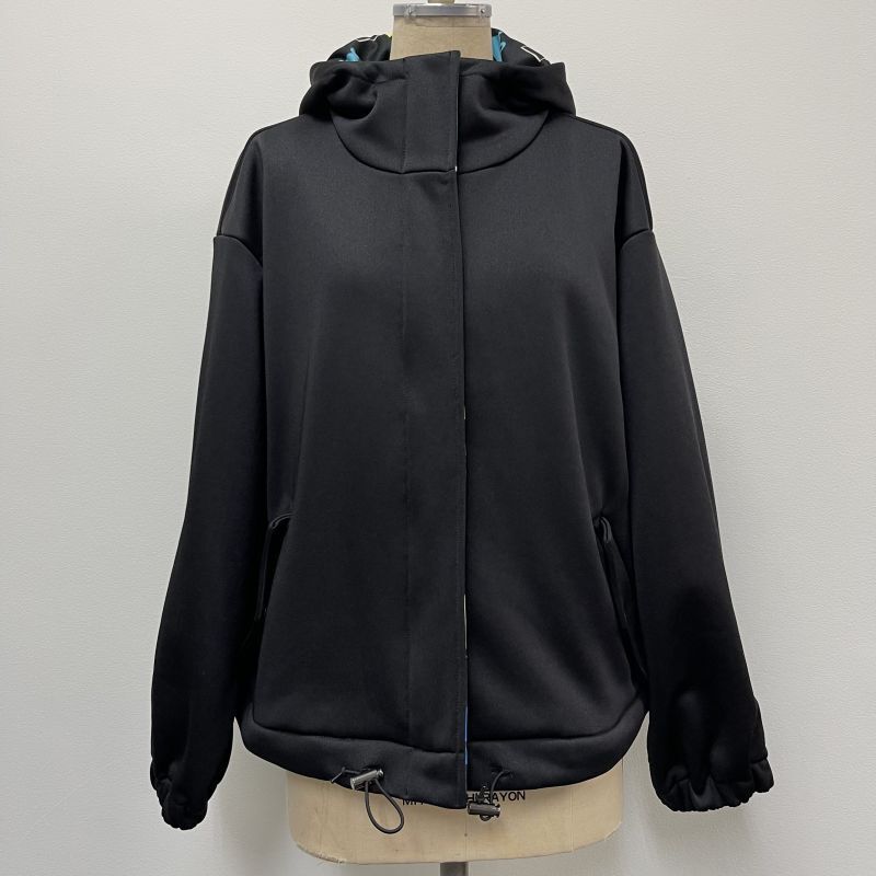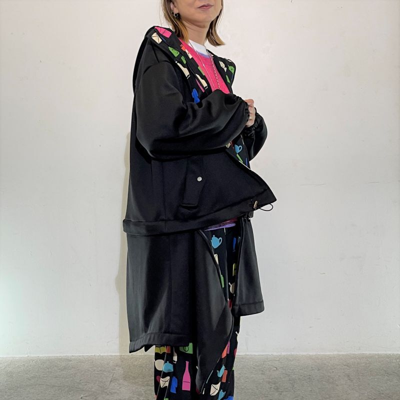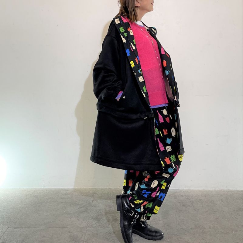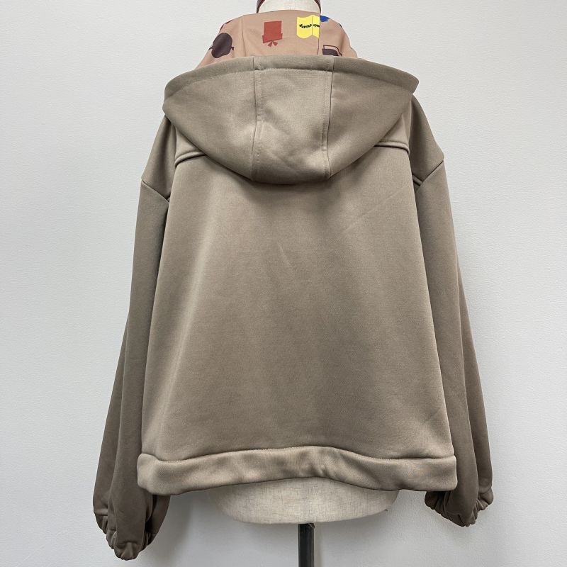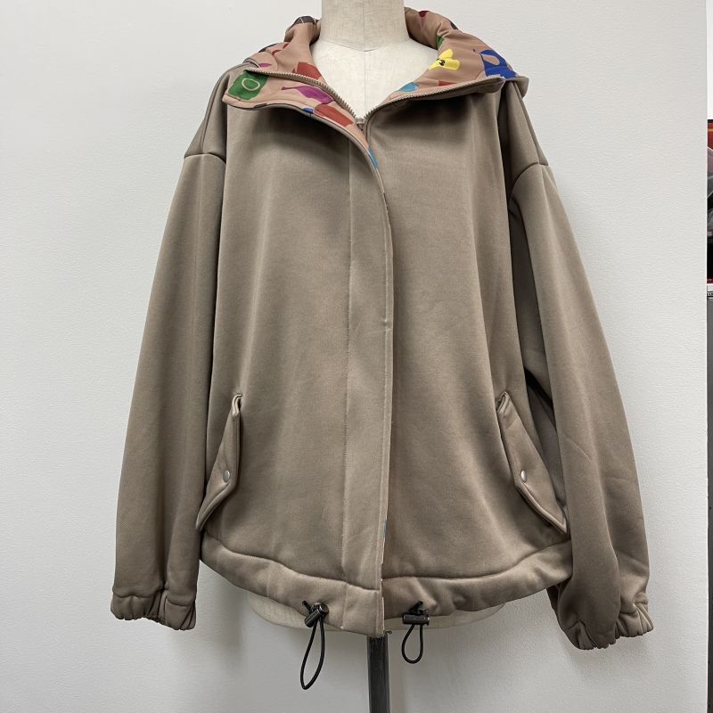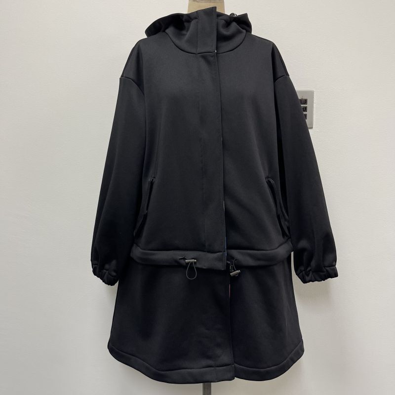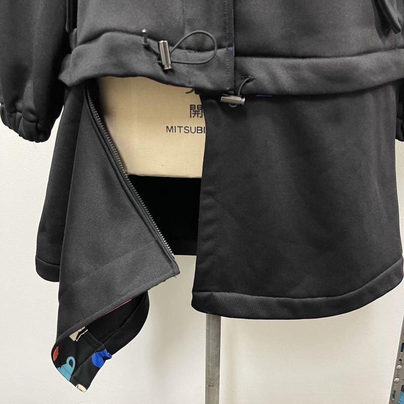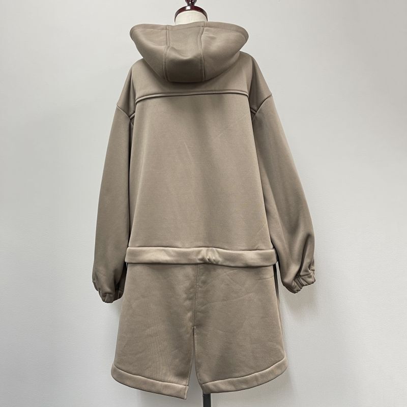 裏が薄いボアになった生地です。途中のファスナーで着丈をショートにできます。
