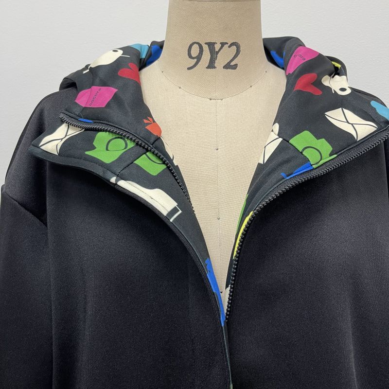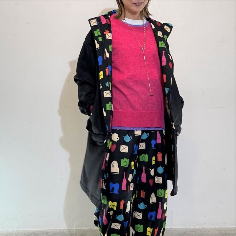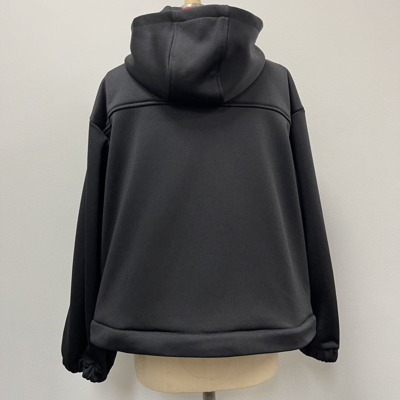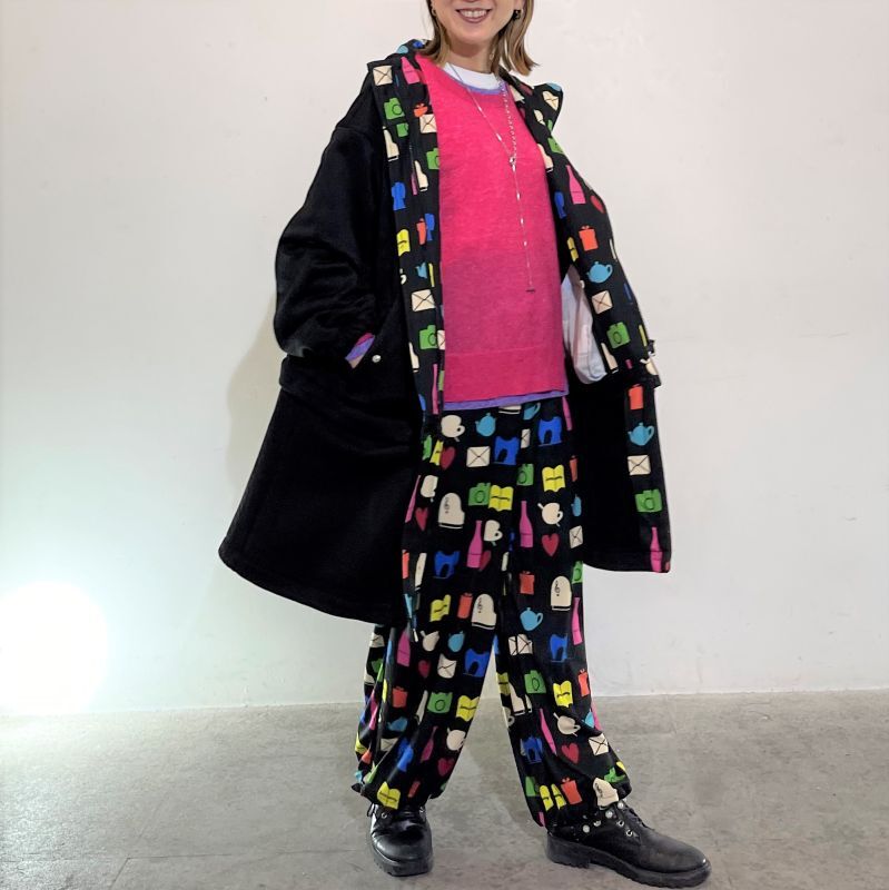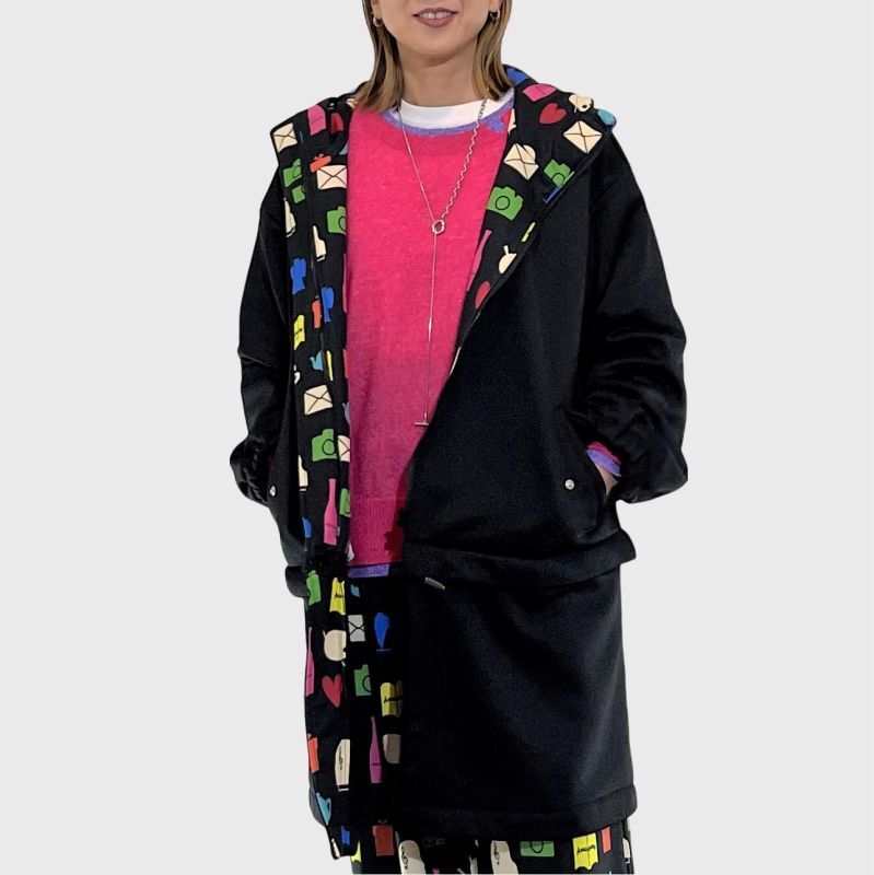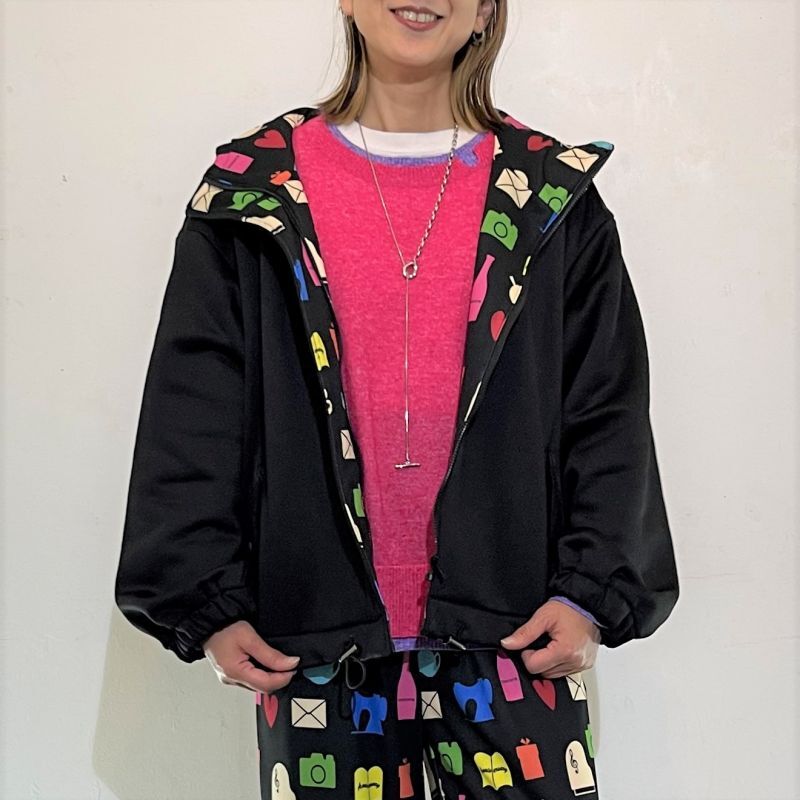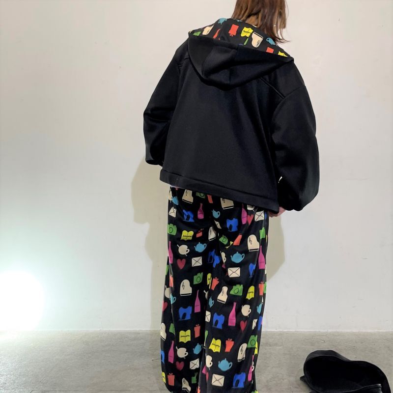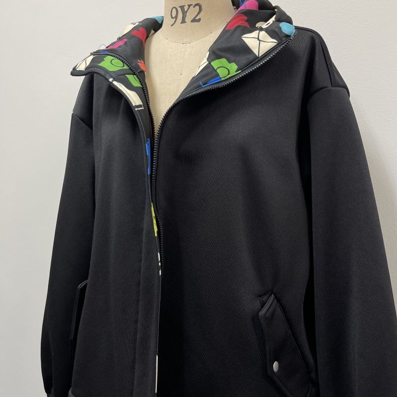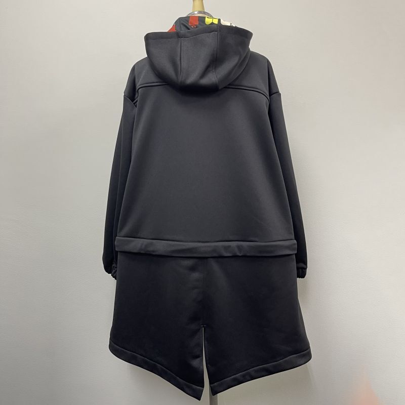 裏が薄いボアになった生地です。途中のファスナーで着丈をショートにできます。