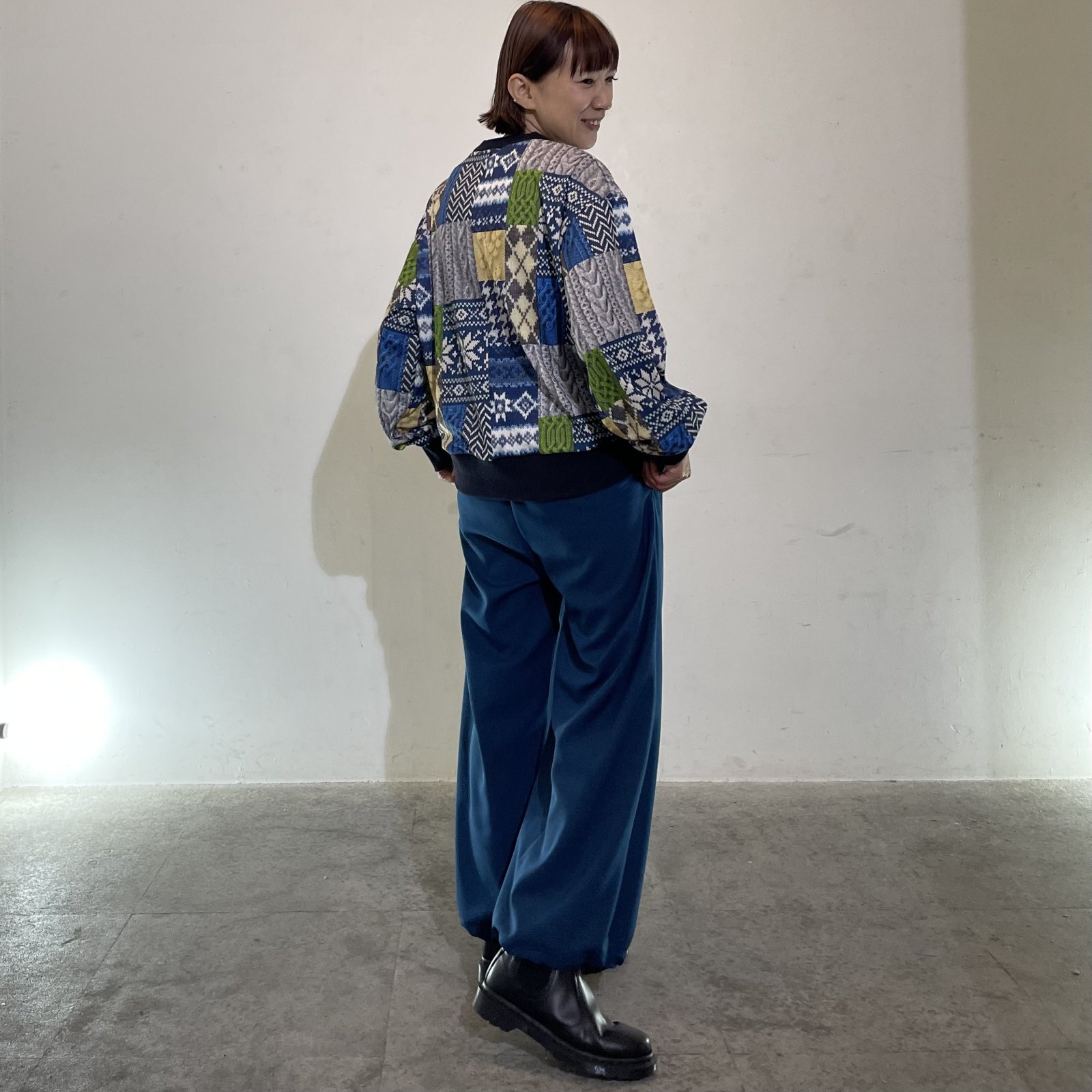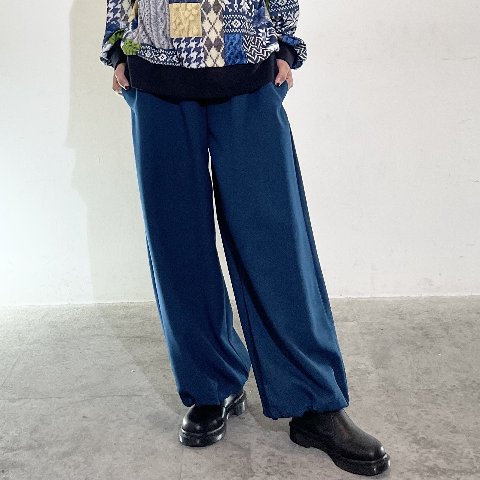 形はウエストがリブで楽ちんでスッキリ見える太めのストレートパンツ。