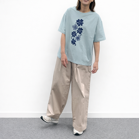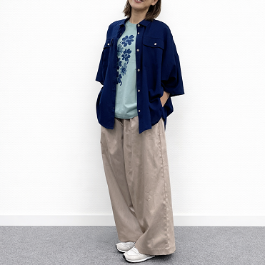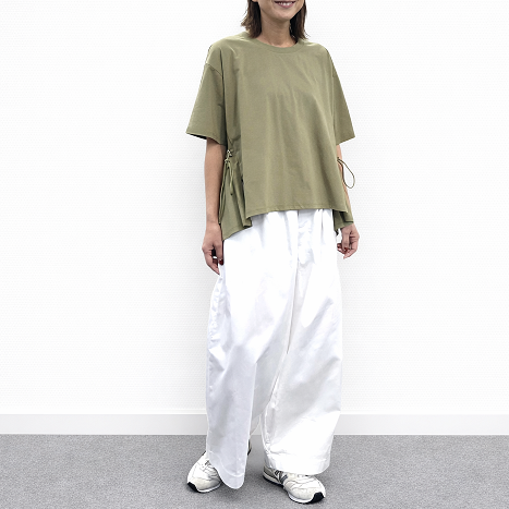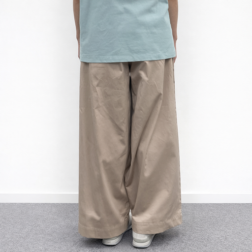 今までのcocoraのワイドパンツの中で1番ヒップ、裾幅が大きい、本当にダボっとカジュアルに履く太ーいパンツです。