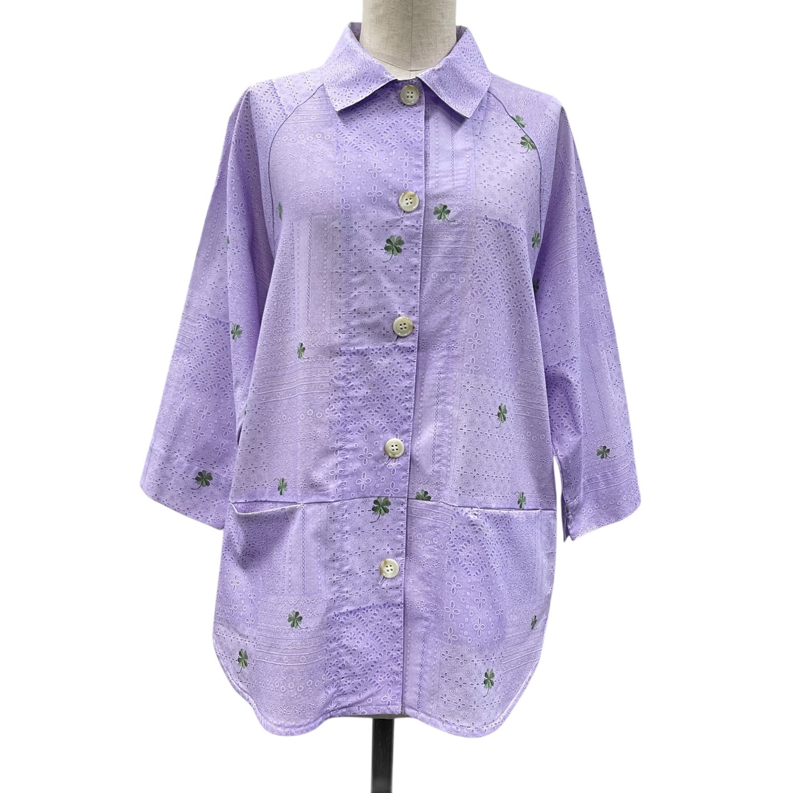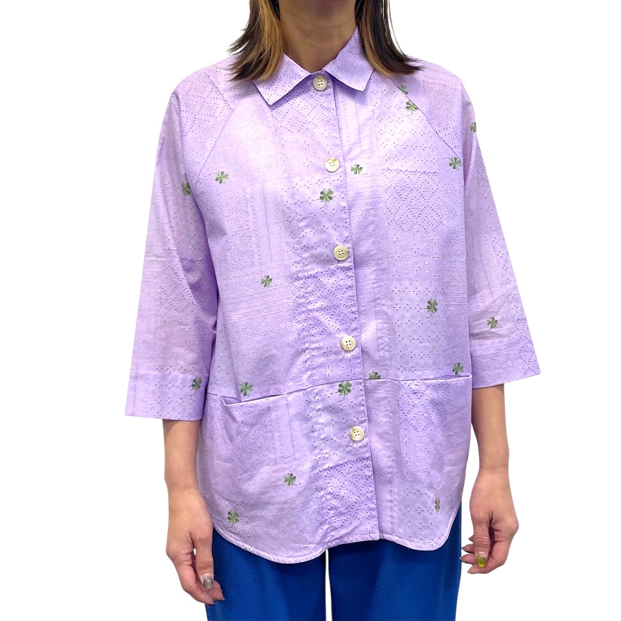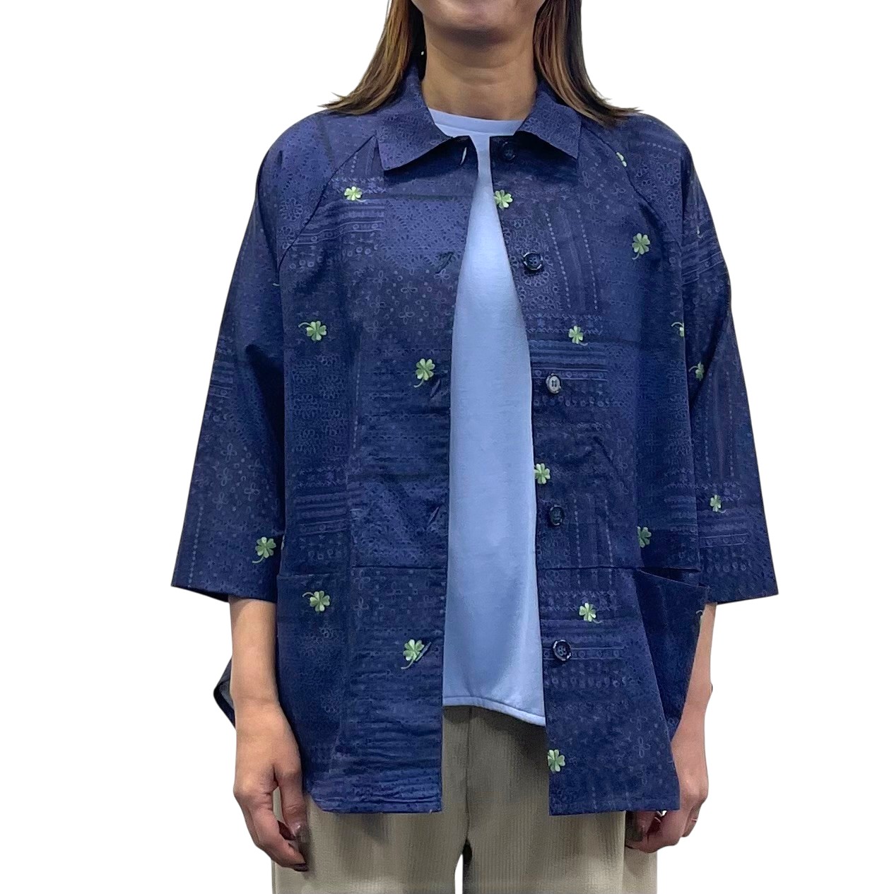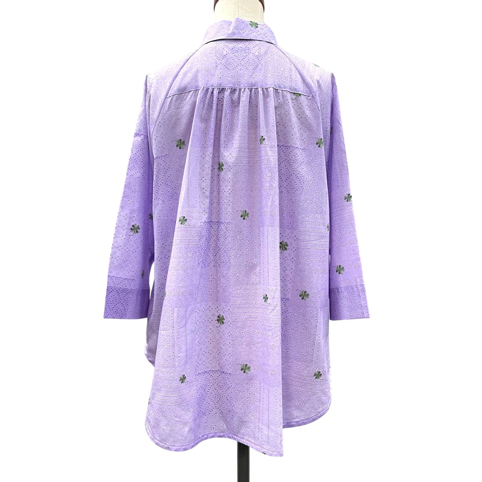 レース&クローバー刺繡プリント ラグランシャツ
