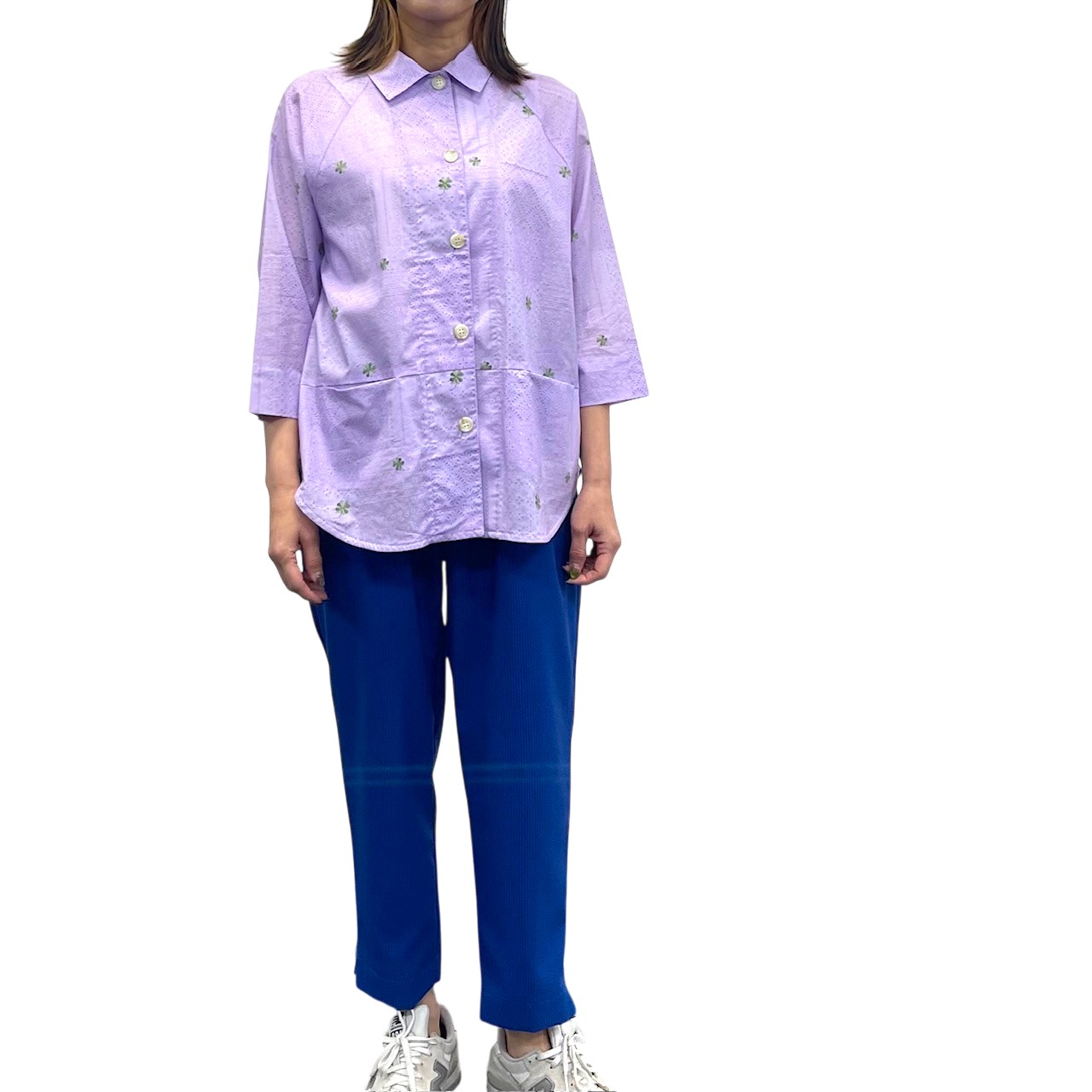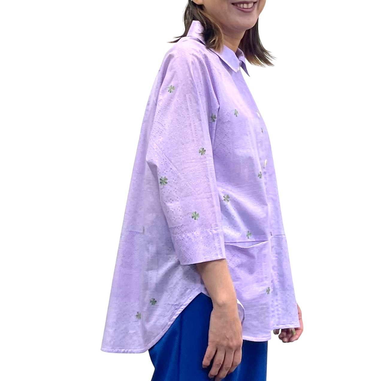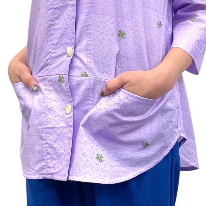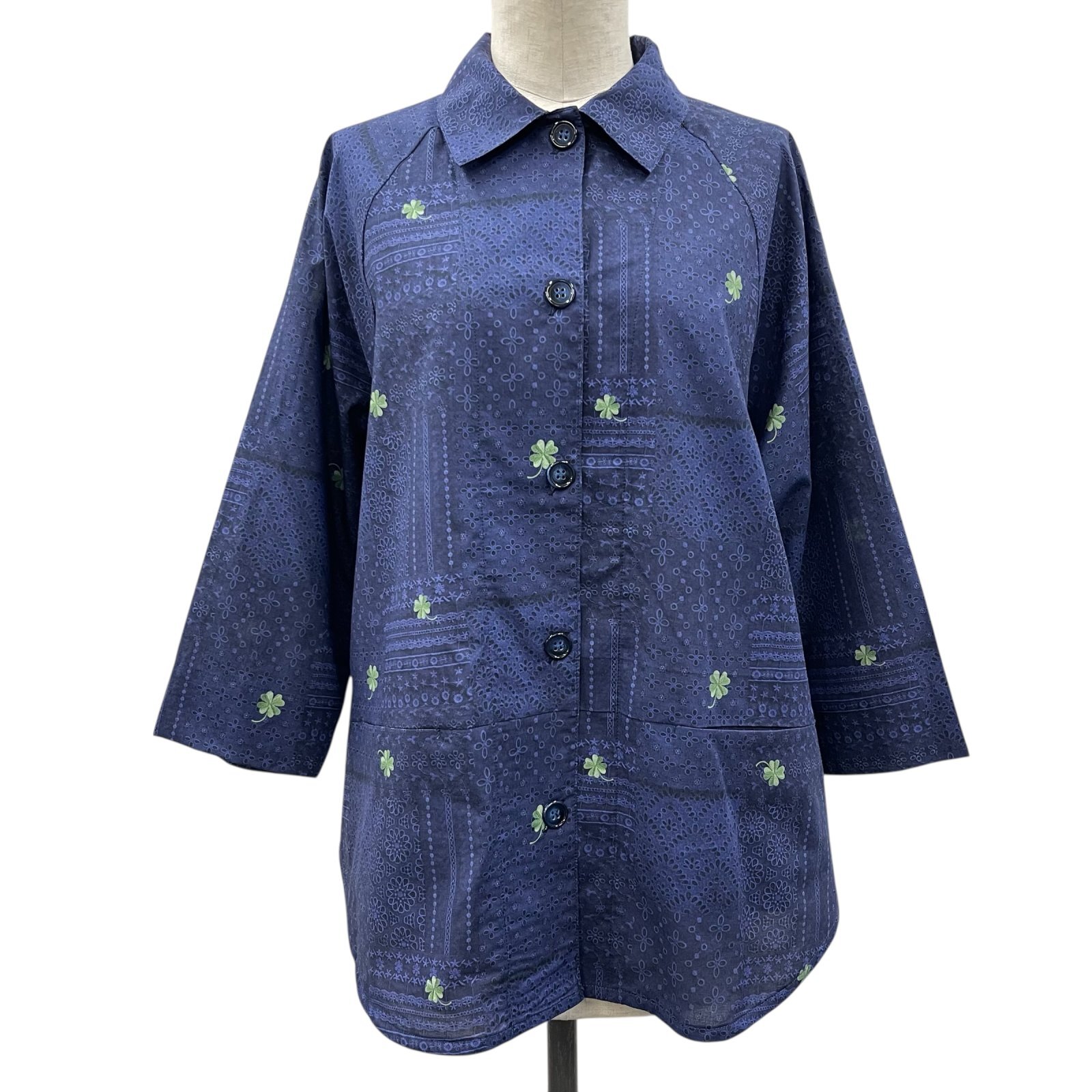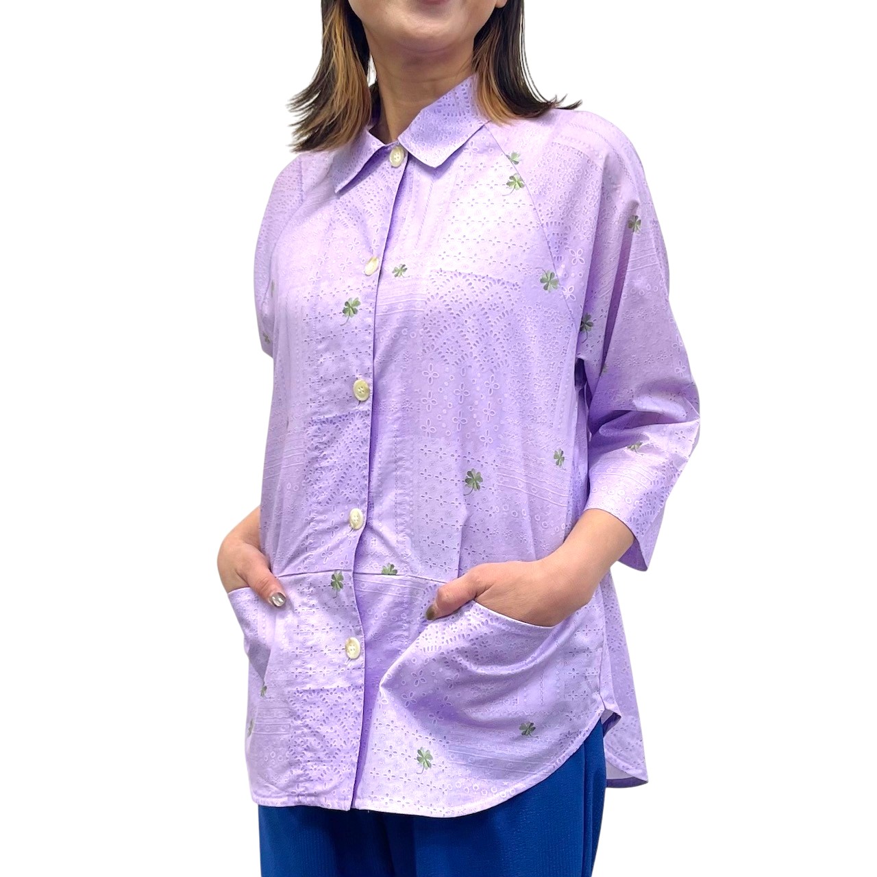 レース&クローバー刺繡プリント ラグランシャツ