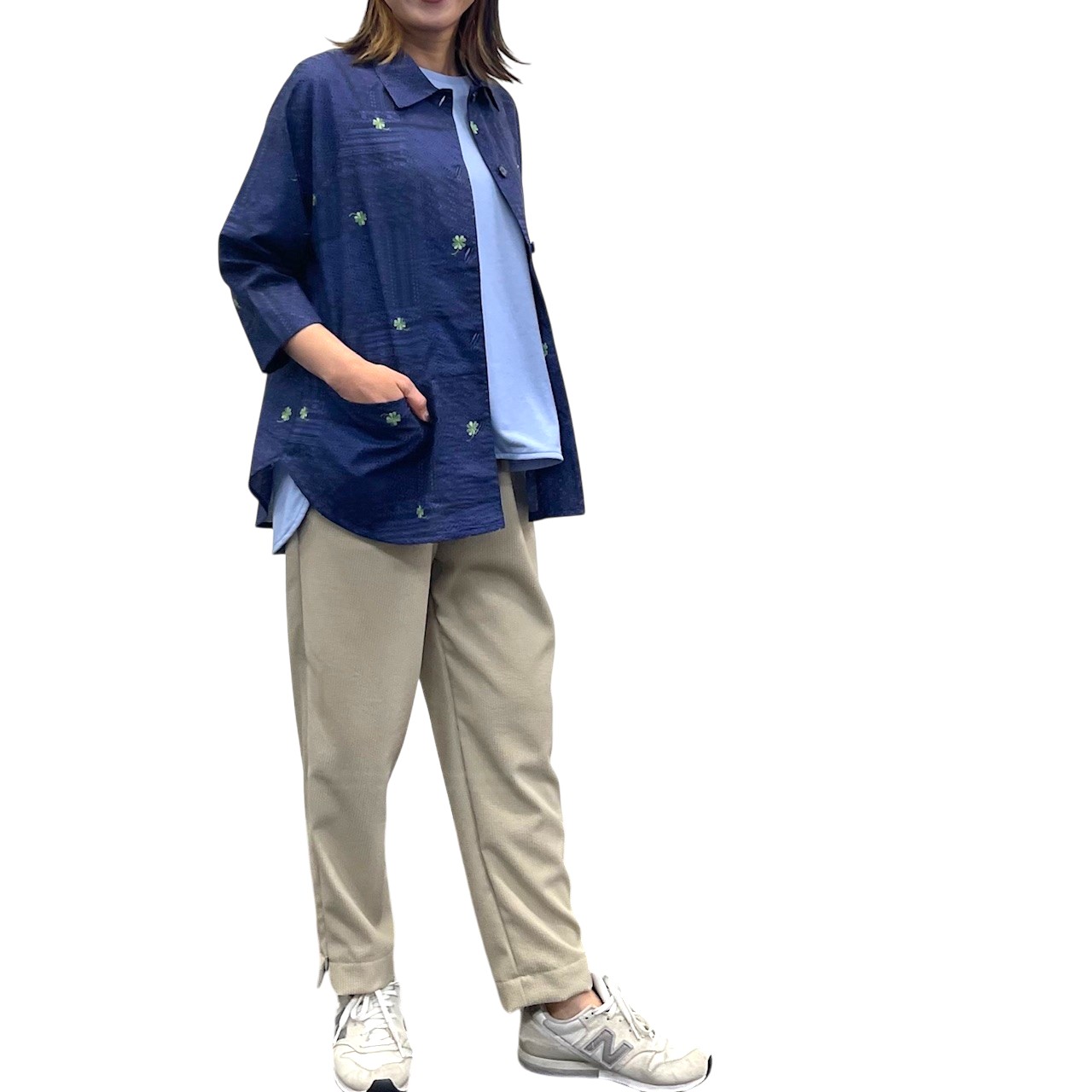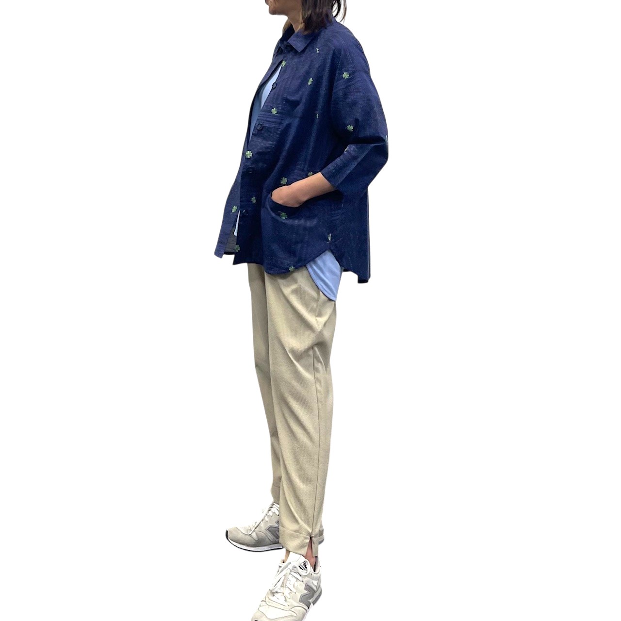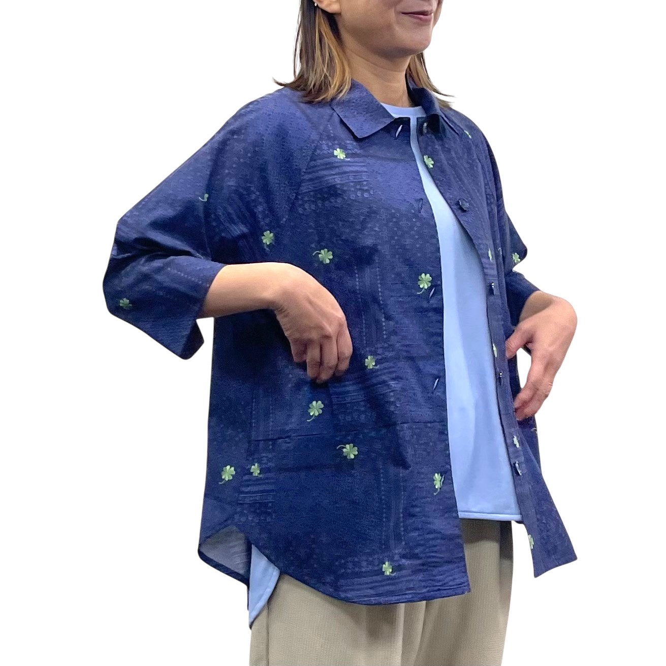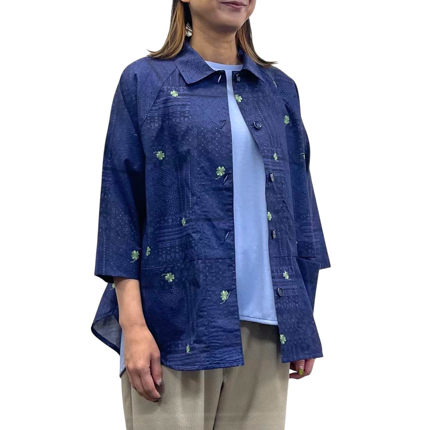 レース&クローバー刺繡プリント ラグランシャツ