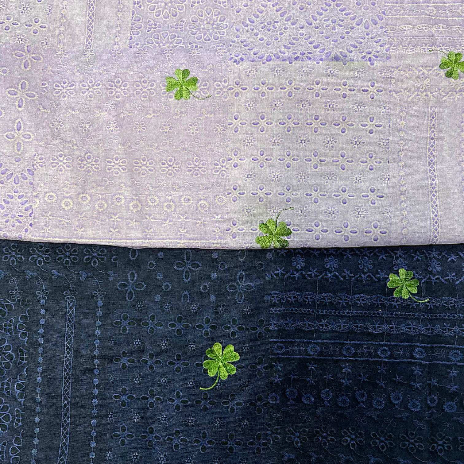 まるでレースをパッチワークして、その上にクローバーの刺繍をしたような、