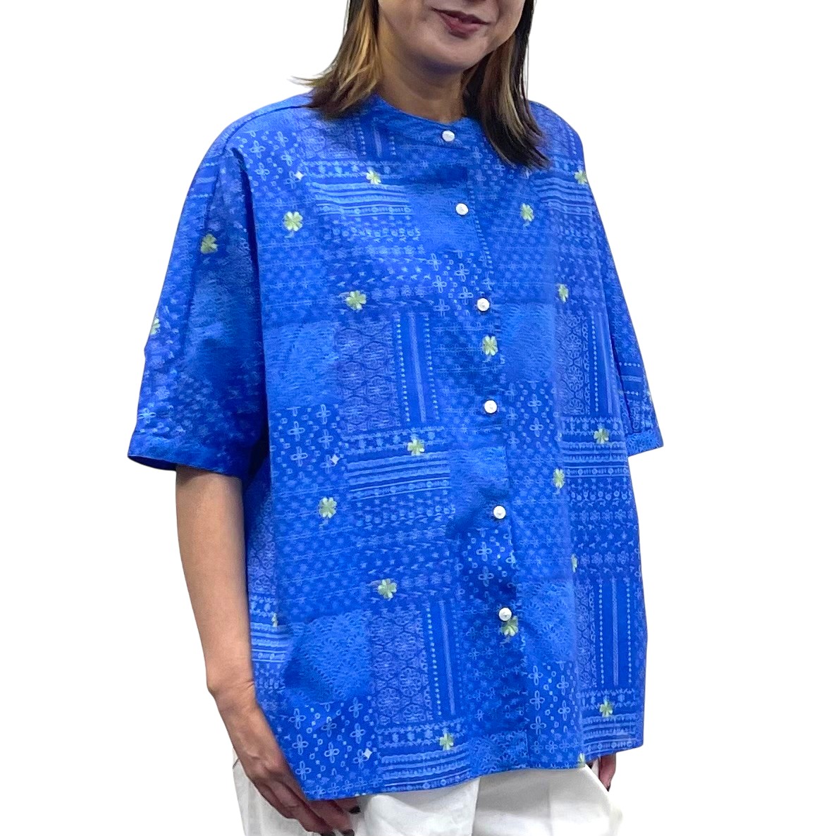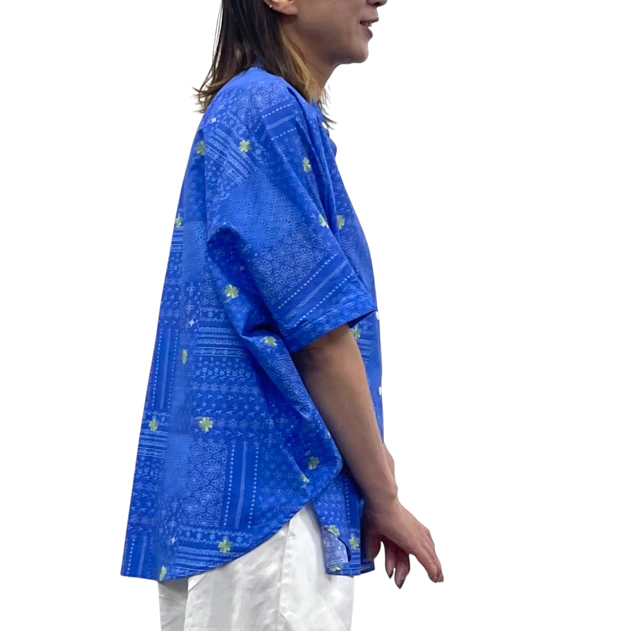 形はラウンド型でしめつけのない、涼しいシャツです。